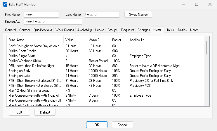 Rules - can be tailored to each staff member,